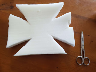 Remplir le reste du casque avec le reste de mousse. Dans le cas présent, j’ai collé uniquement les morceaux de mousse au bord du casque.