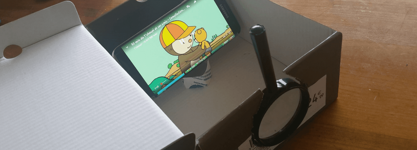 Un simple rouleau de papier pour positionner correctement le téléphone dans la boite.