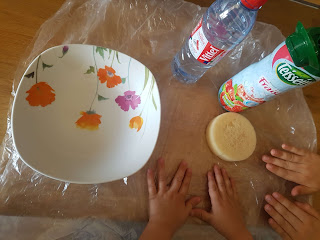 Poser l’éponge sur le “sang” et le sac plastique. L’éponge va représenter les tissus et le plastique la peau (ne laissant pas sortir le sang).