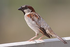 Le Moineau domestique est une espèce de petits passereaux de la famille des Passeridae. C’est un petit oiseau assez trapu, mesurant environ 16 cm de long pour un poids allant de 24 à 39,5 g