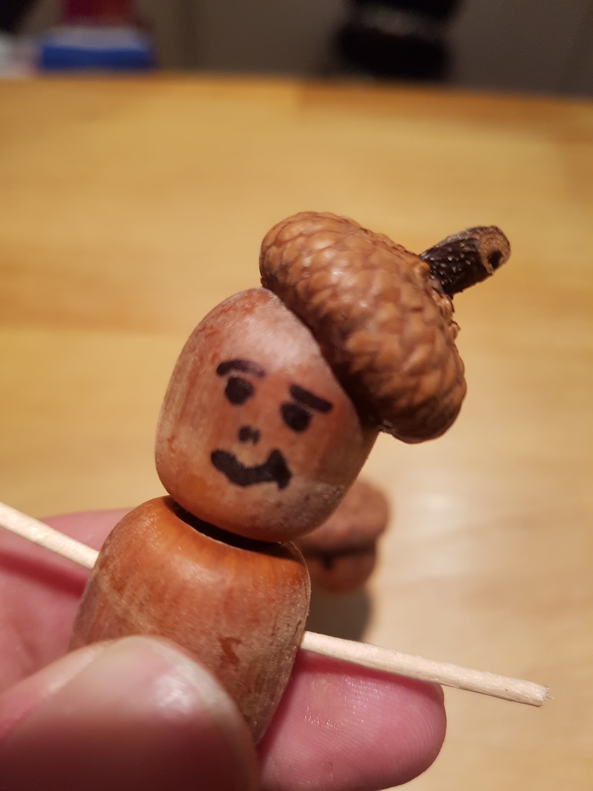 Une pointe de colle sur le chapeau du gland pour fixer les pieds…