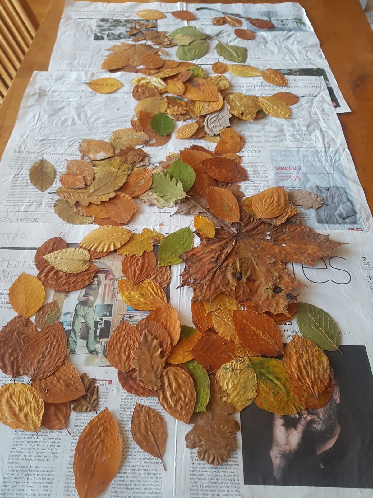 découvrir les nervures des feuilles avec une feuille de papier … par la suite il est possible de colorier les feuilles ou autres variantes.