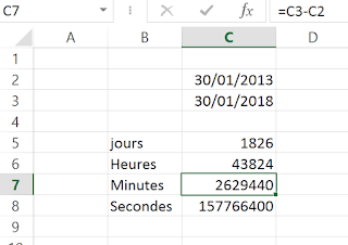 Saisir les deux dates par exemple en C2 la date de départ et en C3 la date de fin