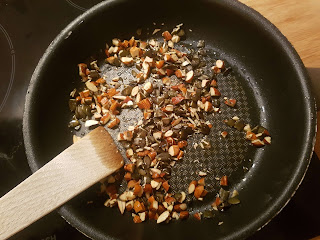 A feu vif ou moyen faire chauffer la poêle avec le reste d’huile utilisé pour les graines. utilisez la même poêle c’est l’idéal.