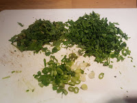 Nettoyer puis couper les racines de Ciboules, le persil, la menthe et l’ail …