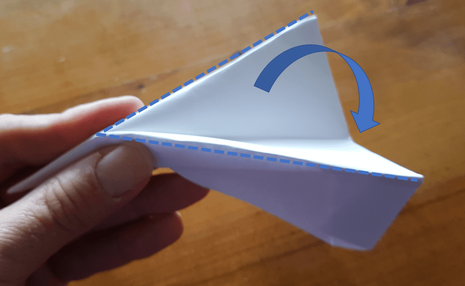 Positionner les ailes comme ci-dessous et rabattez le pliage de l’avion de l’avion (en haut) comme ci-dessous par dessus les ailes :