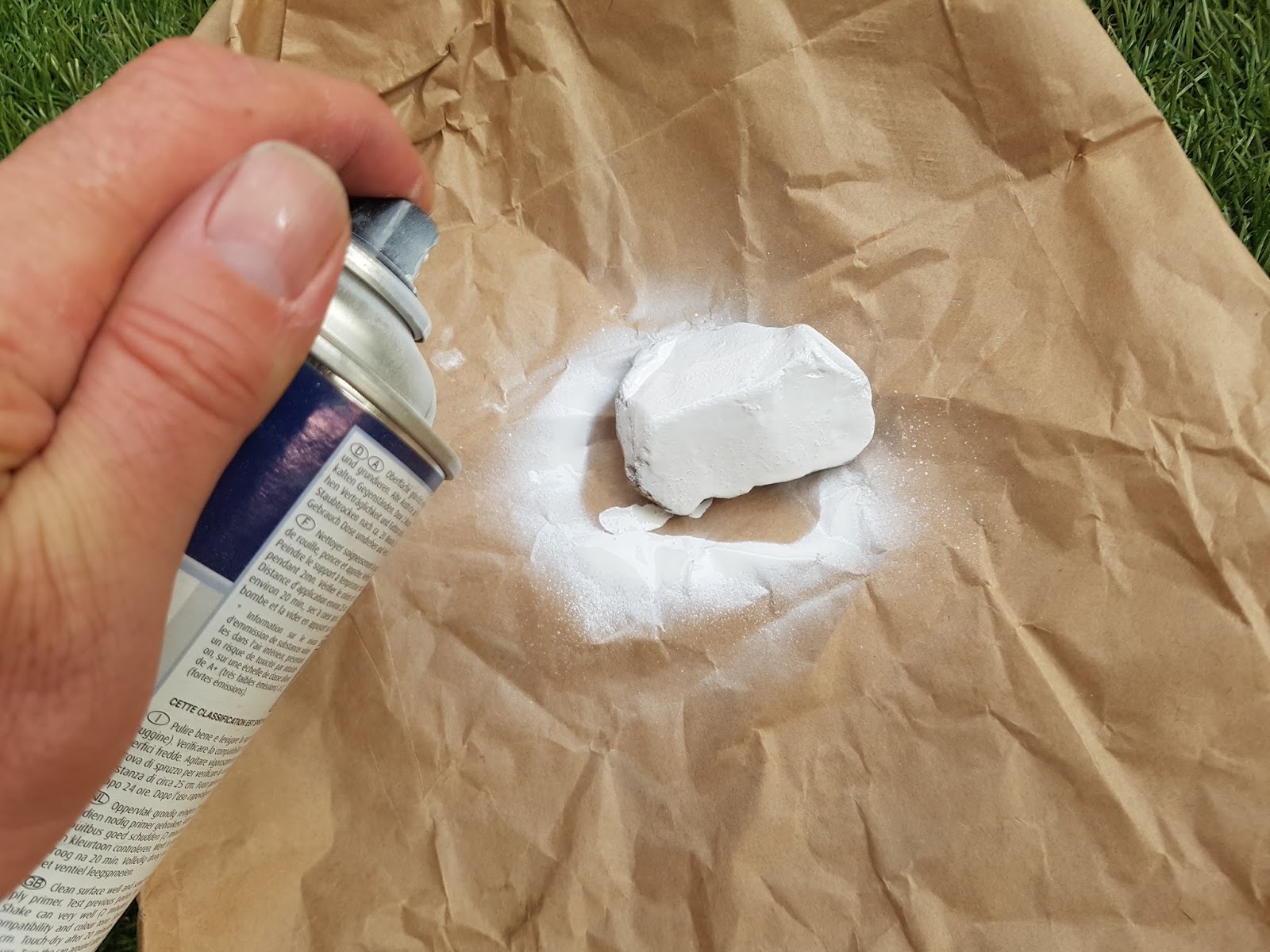 - Peinture blanche (idéalement suivante l’effet recherché, une peinture BIOdégradable)