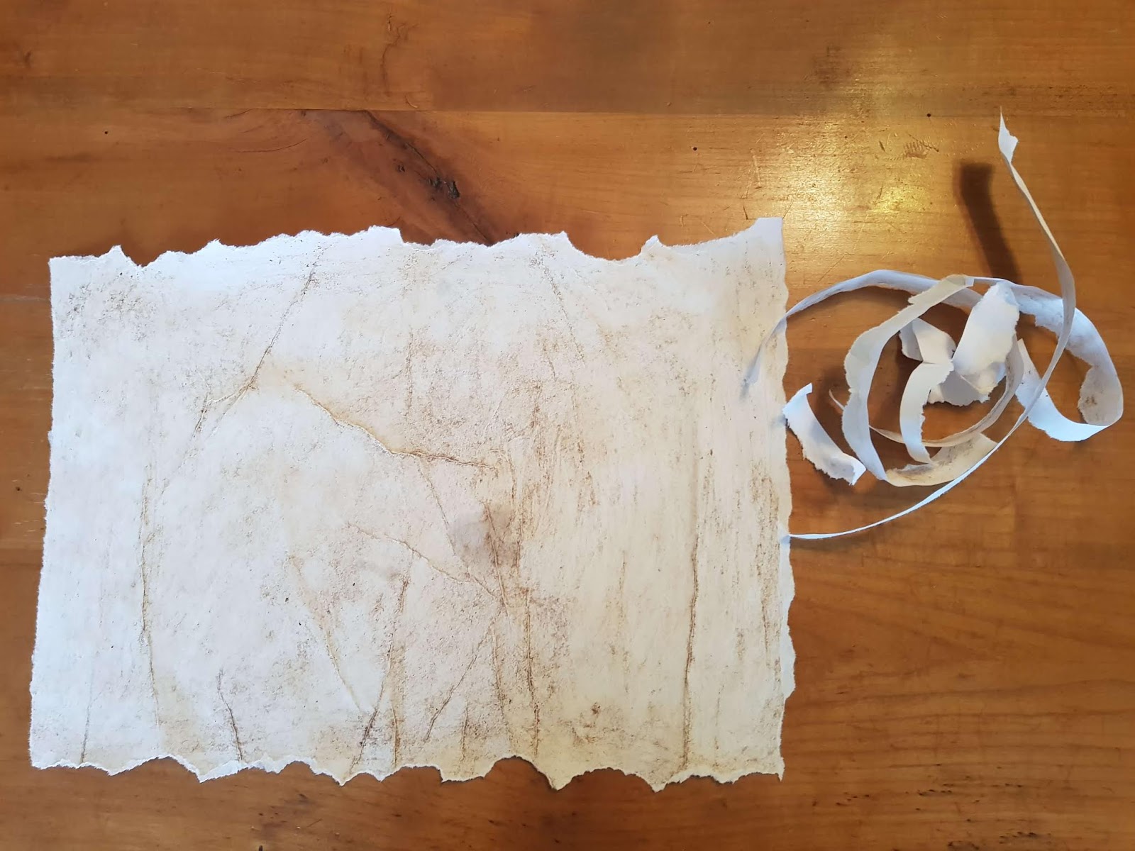 Avec le marc de café, brunir le papier.