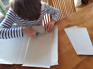 Découper les cartons d’une taille legèrement inférieur à la boite en carton. nous pourrons ainsi les ranger dedans.