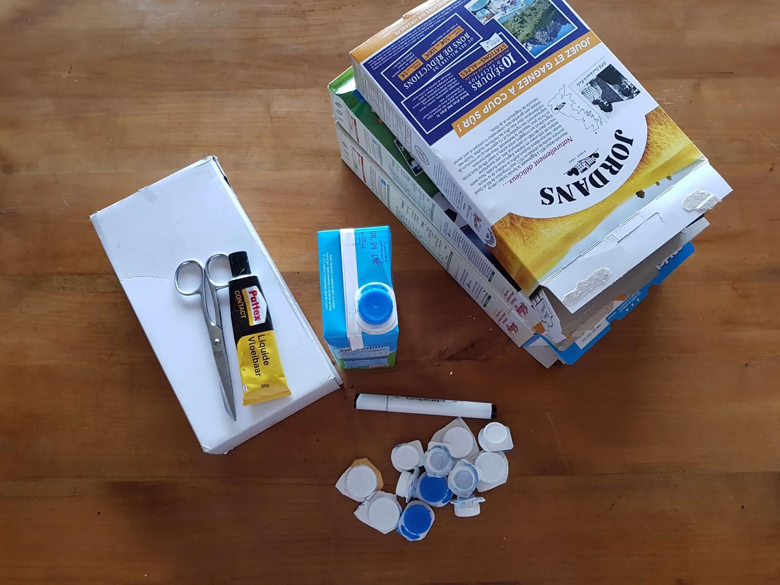 Sur les cartons decoupés, tracer des ronds de la taille des bouchons :